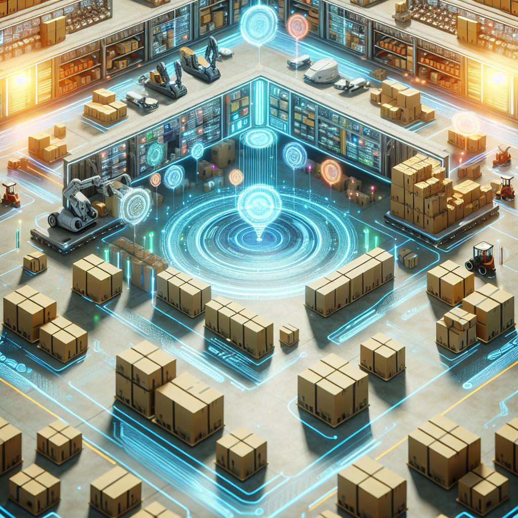 Magazzino high-tech con robot e rete dati, esempio di integrazione tra WMS e algoritmi di packing IA